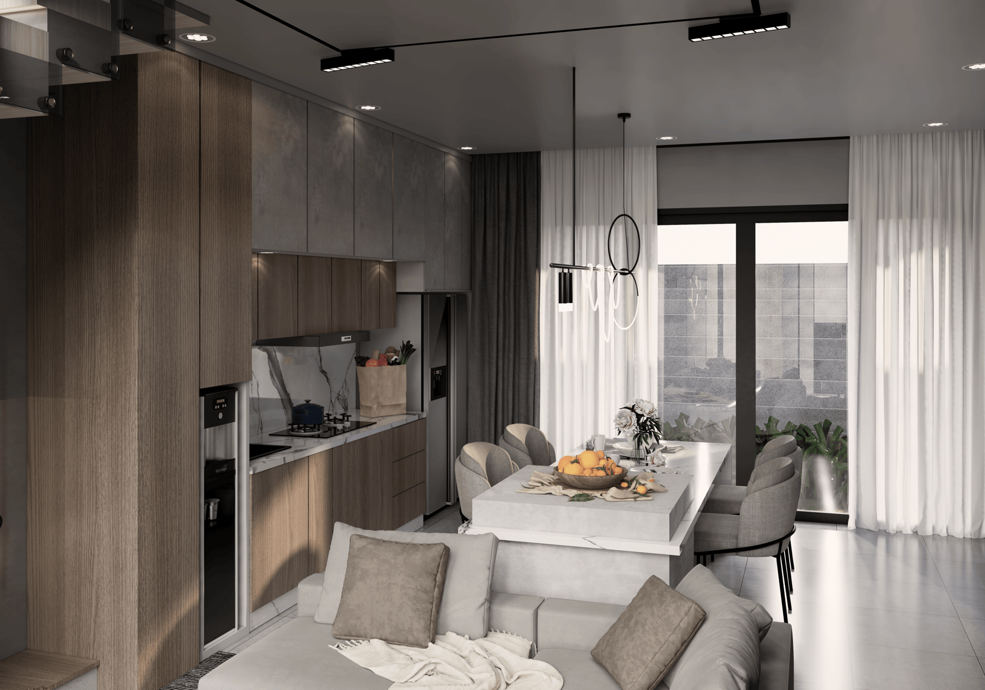 Авторская архитектура комплекса и дизайн апартаментов выполнен с использованием только премиальных и натуральных материалов, каждый апартамент укомплектован дизайнерской мебелью и современной европейской техникой.