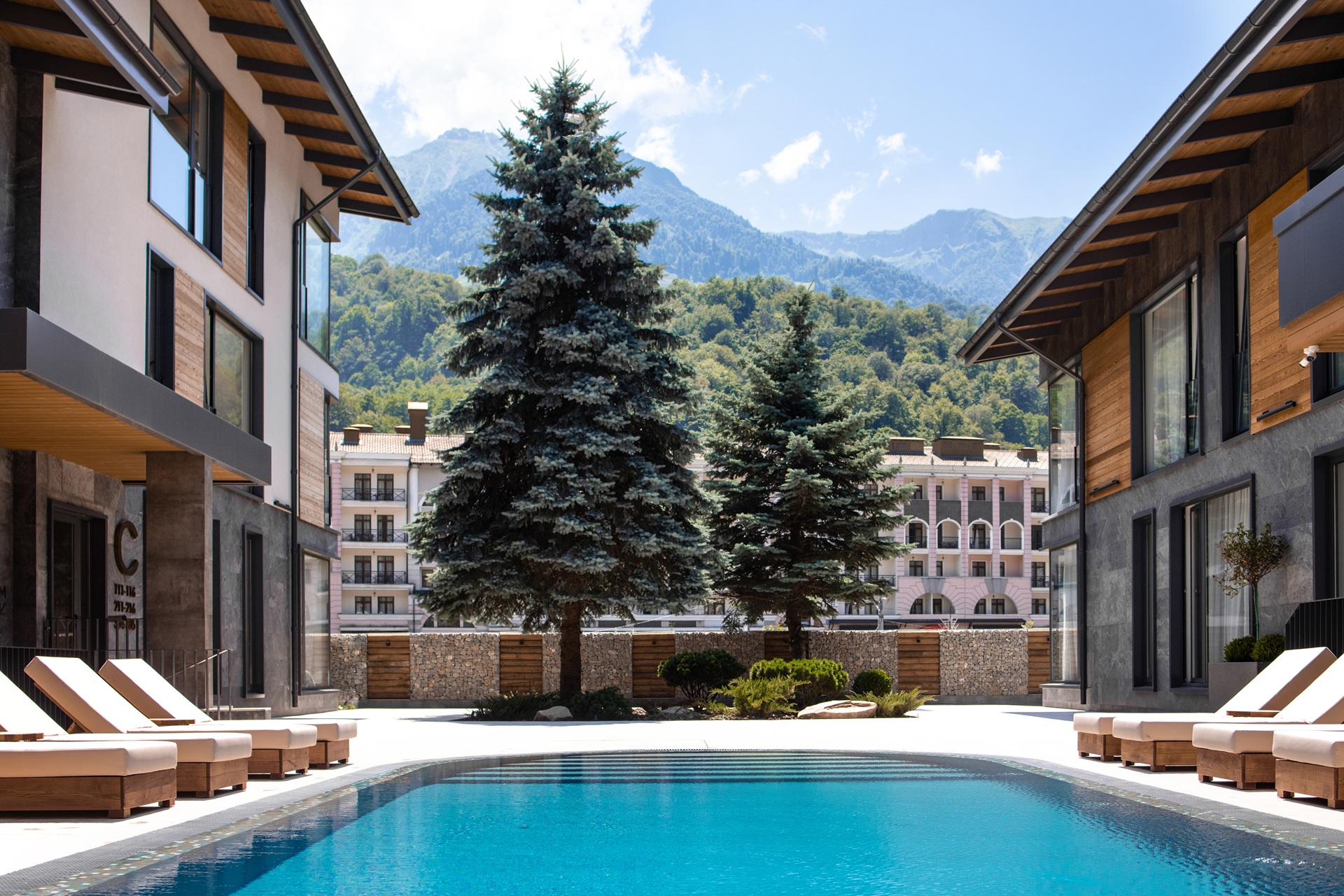 Это оазис шикарного отдыха, умиротворения и высокого сервиса. Комплекс оборудован на 43 апартамента, расположен в Красной поляне на высоте 580 метров над уровнем моря. Все апартаменты сдаются в полной готовности к приему гостей.